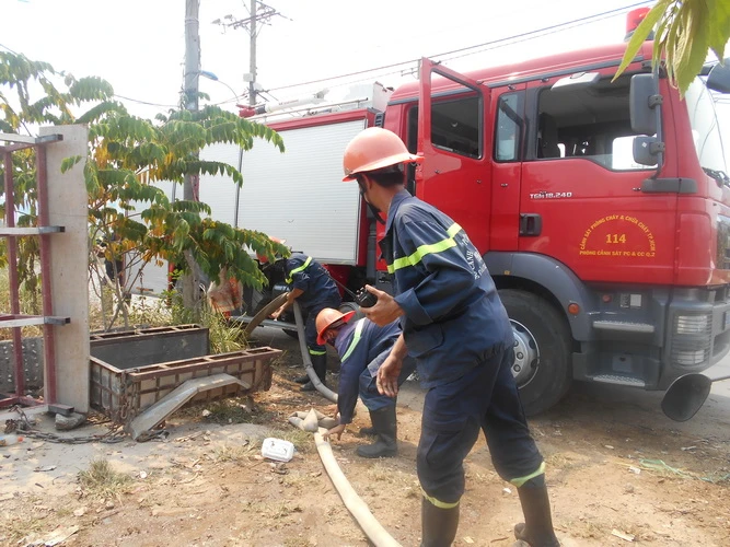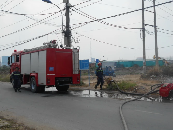 Tại hiện trường, các chiến sĩ phòng cháy chữa cháy Q. 2 đã có mặt để dập tắt đám cháy. Theo ghi nhận của phóng viên, ban đầu chỉ có một xe PCCC, nhưng sau đó đã huy động thêm hai chiếc để hỗ trợ dập tắt đám cháy.