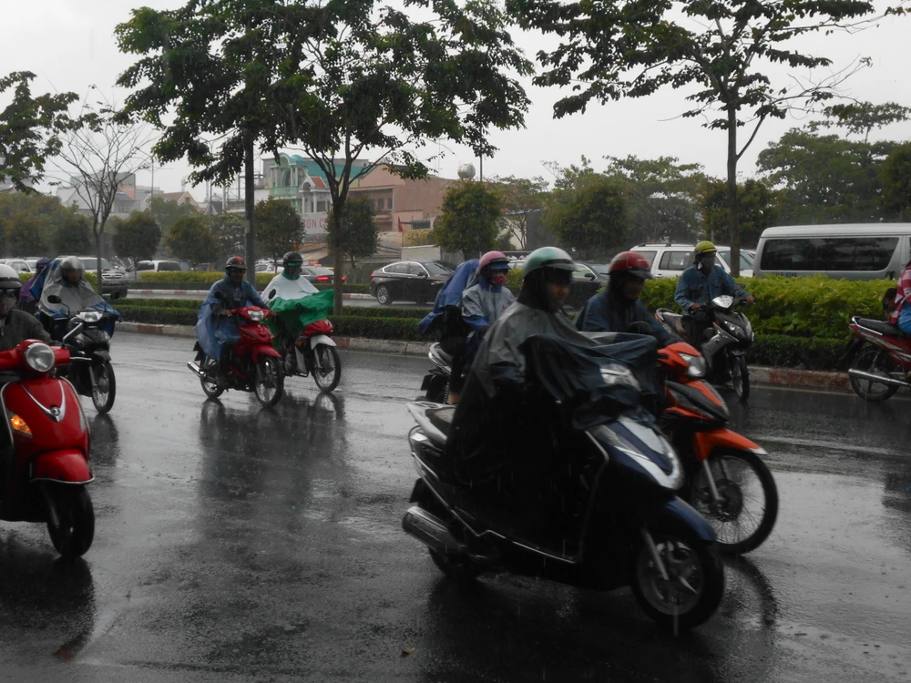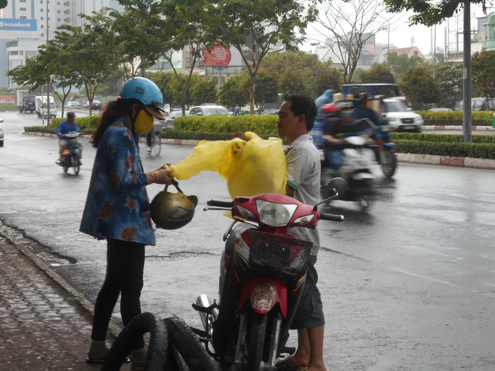 Cơn mưa xuất hiện vào khoảng 15 giờ chiều nay trên khắp địa bàn thành phố, làm dịu đi cái nóng gay gắt kéo dài mấy tháng nay ở TP.HCM. Sau cơn mưa vào chiều hôm qua (5-5), nhiều người đã rút kinh nghiệm và thủ sẵn áo mưa trong cốp xe để không phải bị ướt.