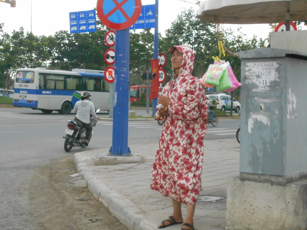 Mang áo mưa để bán áo mưa phương tiện dù trời đang mưa ở đường Mai Chí Thọ, quận 2 dù trời chưa mưa. ẢNH: THANH TUYỀN