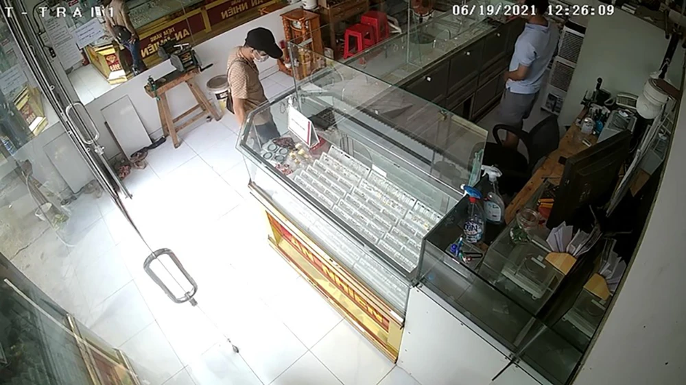 “Anh ta nói để xem thử rồi giật chạy. Do tủ trưng bày của tiệm vừa được gắn thêm lớp kính cao khoảng 60 cm để phòng, chống dịch nên tôi không bắt được kẻ gian”- ông Y. nói.