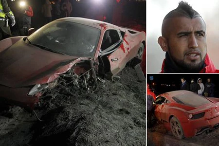 Vidal đang tham dự Copa America cùng đội tuyển Chile tại quê nhà. Đêm qua, sau khi rời khỏi một sòng bạc cùng vợ, chiếc xe Ferrari của Vidal đã mất kiểm soát và gây tai nạn trên đường cao tốc ở phía nam thủ đô Santiago của Chile. Hình ảnh cho thấy siêu xe của Vidal nát bét nhưng rất may Vidal cùng vợ chỉ bị thương nhẹ. Các túi khí trên xe đã bung ra kịp thời giúp cho Vidal và vợ không bị thương nặng hơn.