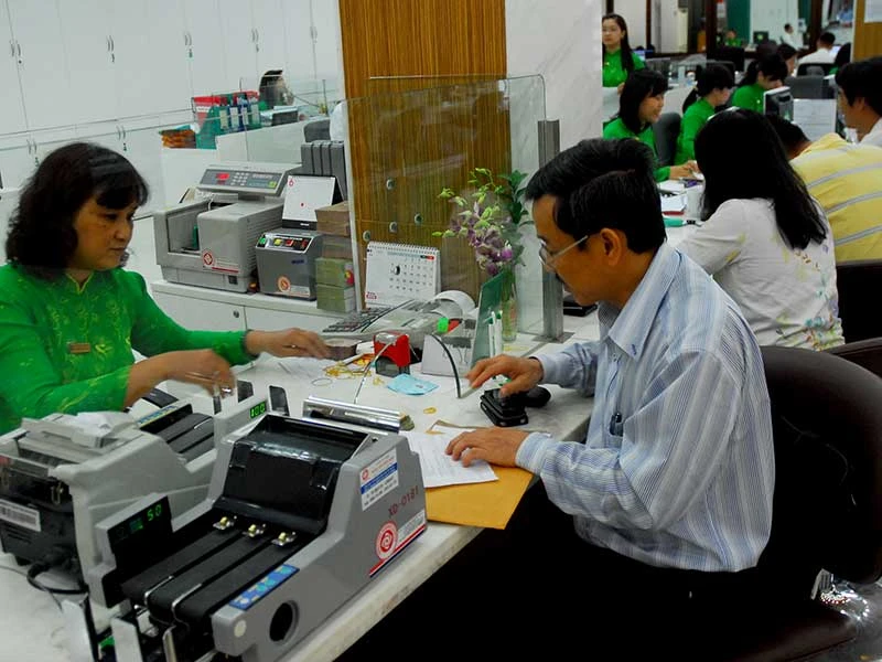 Khách hàng đang giao dịch tại Ngân hàng Vietcombank. Ảnh: HTD