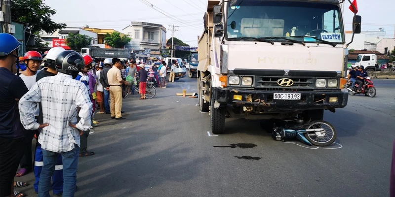 Cú va chạm mạnh vào đầu xe tải làm chiếc mô tô bị cuốn vào gầm ô tô, anh Khanh bị xe tải cán qua, tử vong tại chỗ.
