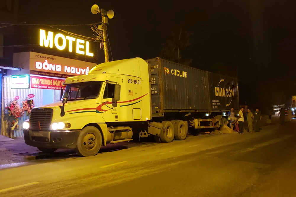 Người dân tại hiện trường cho biết, vào khoảng hơn 22 đêm 8-10, Phạm Quang Huy (26 tuổi) đi xe máy biển số TP.HCM chở theo 1 cô gái trên đường Nguyễn Duy Trinh hướng từ cảng Phú Hữu về đường Võ Chí Công. Đến gần nhà thờ Phú Hữu (phường Phú Hữu, quận 9), chiếc xe máy va chạm với container 51C – 256.67, chạy cùng chiều. Tai nạn khiến Huy tử vong tại chỗ, cô gái bị thương được đưa đi cấp cứu