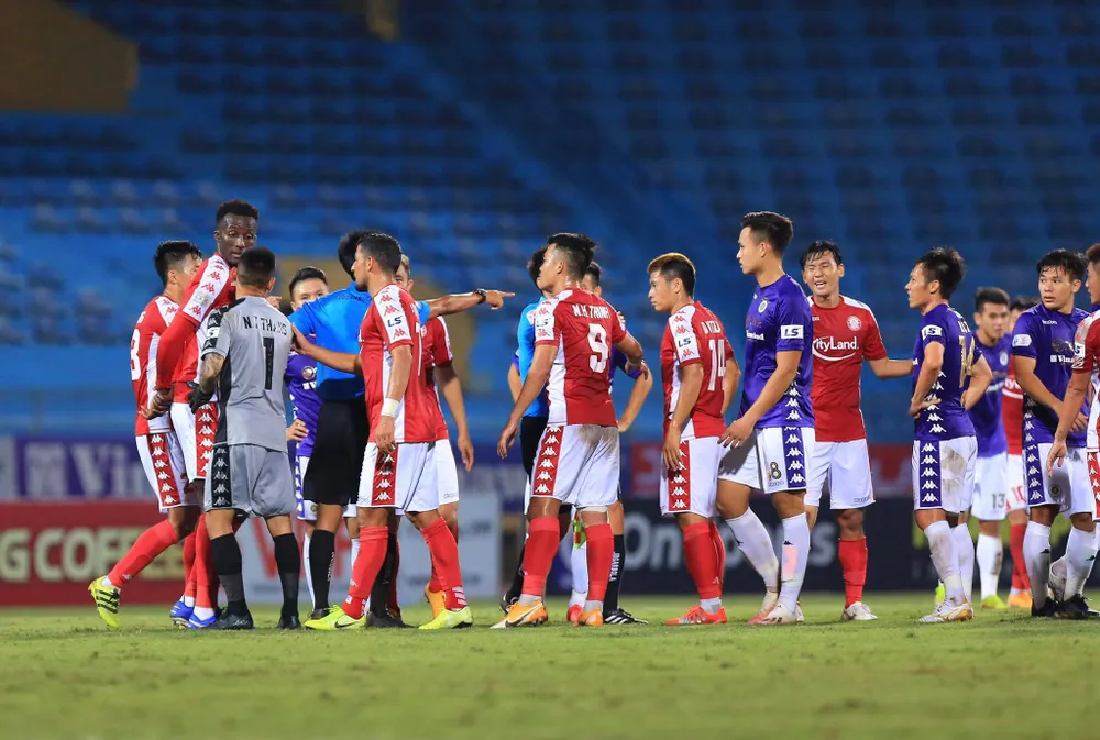 Cuộc đối đầu nào giữa Hà Nội và TP.HCM cũng có những pha bóng quyết liệt hơn mức cho phép khiến trọng tài phải rất nghiêm khắc cảnh báo. Ảnh: NGỌC DUNG.