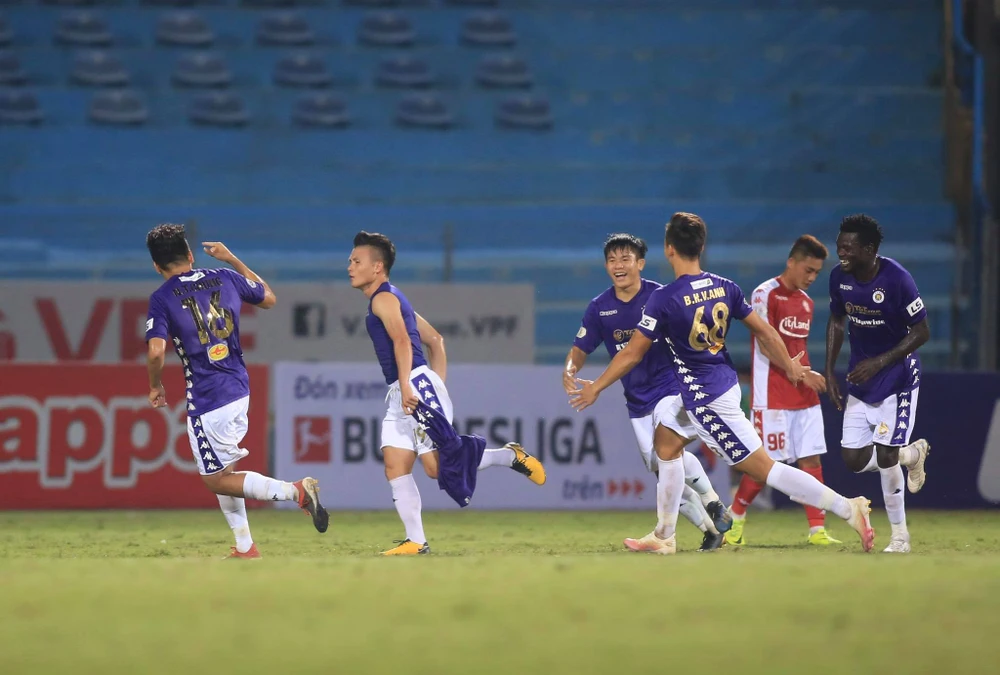 Bàn thắng đến cho chủ sân Hà Nội trong hiệp hai khi Quang Hải bị ngoại binh Diakite phạm lỗi trong vòng cấm giúp Văn Quyết mở điểm trên chấm phạt đền 11 mét. Gần cuối trận, Quang Hải độc diễn và sút thắng Thanh Thắng ấn định 2-0 cho nhà đương kim vô địch.