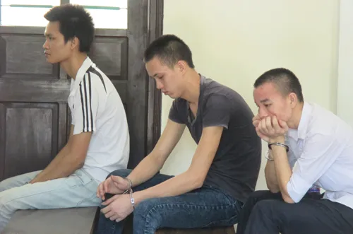 Dũng (ngoài cùng bên trái) cùng 2 đồng phạm tại tòa. Ảnh: Đắc Lam.