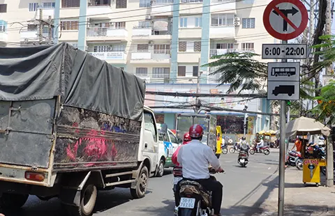 Ngã ba đường Trường Sơn - Cách Mạng Tháng Tám, bên hông Công viên Lê Thị Riêng, là một ví dụ điển hình. Cách ngã ba này chưa tới 20 m có cắm tấm biển chính và phụ cấm xe khách trên 16 chỗ và xe tải các loại từ đường Trường Sơn rẽ phải và rẽ trái sang đường Cách Mạng Tháng Tám. Do quãng đường còn lại quá ngắn và các dòng xe phía trước từ hai hướng của đường Cách Mạng Tháng Tám liên tục rẽ vào nên các bác tài của hai loại xe trên khi đến đây cũng đành… liều rẽ phải hoặc rẽ trái luôn chứ không thể quay đầu trở lại đường Trường Sơn.