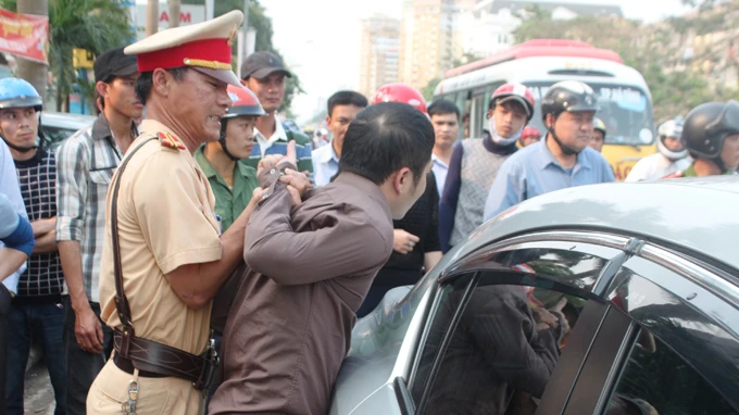 Khoảng 15g10 chiều 3-4, trên QL1 đoạn chạy qua đường Quang Trung, TP Vinh (Nghệ An) đã xảy ra vụ tai nạn liên hoàn giữa ôtô con và hai xe máy. Điều đáng nói, tài xế “cố thủ” trong ôtô và quậy tưng bừng khi được mời ra khỏi xe.