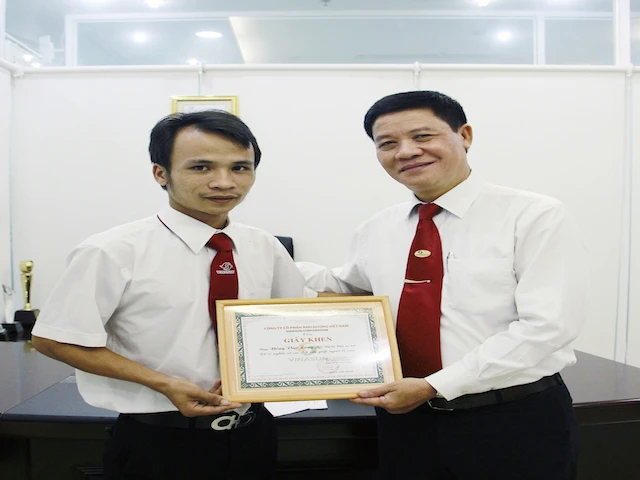 Ông Trương Đình Quý – Phó Tổng Giám đốc Công ty Cổ phần Ánh Dương Việt Nam đã tặng giấy khen và tiền thưởng nóng cho lái xe Đồng Văn Long