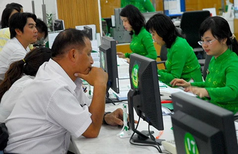 Khách hàng đang giao dịch tại một ngân hàng ở TP.HCM. Ảnh: HTD