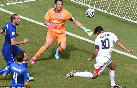 Cái giá phải trả của Balotelli ngổ ngáo và đồng đội quá đắt, bởi chỉ sau đó không lâu, xà ngang của Buffon đã rung bần bật đưa bóng qua vạch vôi sau cú đánh đầu cận thành của Bryan Ruiz. Trọng tài đã phải dùng công nghệ Goal-line xác định đấy chính là bàn thắng và Costa Rica làm người Ý thất hứa khi tiễn tuyển Anh sớm về nước.