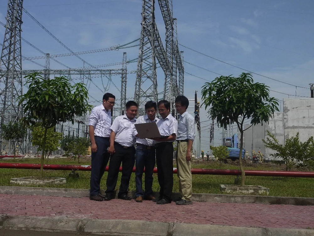 Nhóm kỹ sư Sicam-PAS tại trạm biến áp 500 kV Phố Nối (Hưng Yên).