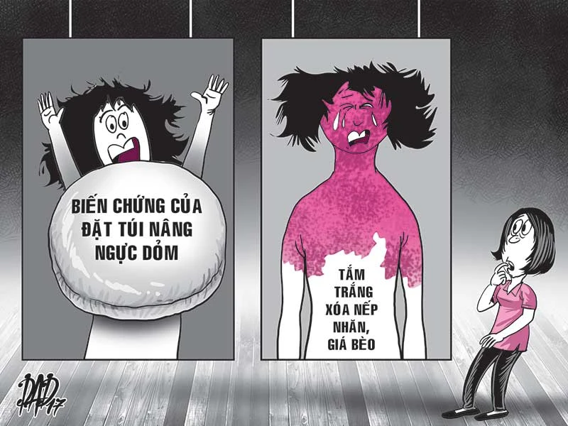 Tuy nhiên, đằng sau các dịch vụ thẩm mỹ giá rẻ đó là nguy cơ tai biến rình rập. Mới đây, Bệnh viện (BV) Nhân dân 115, TP.HCM tiếp nhận bệnh nhân NTAQ, 42 tuổi với các triệu chứng sốt cao, mặt sưng, toàn bộ vùng má bên phải lan đến vùng cổ bị đỏ tấy. Chị Q. cho biết trước đó chị đi xóa nếp nhăn tại một cơ sở thẩm mỹ bình dân. Bác sĩ cho biết chị bị thương tổn vùng da ngoài do xóa nếp nhăn không đúng kỹ thuật, đồng thời bị dị ứng các chất kem bôi da không đảm bảo chất lượng.
