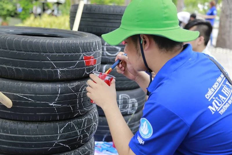 Cùng nhau vẽ lên bánh xe để tô điểm thêm cho con đường.