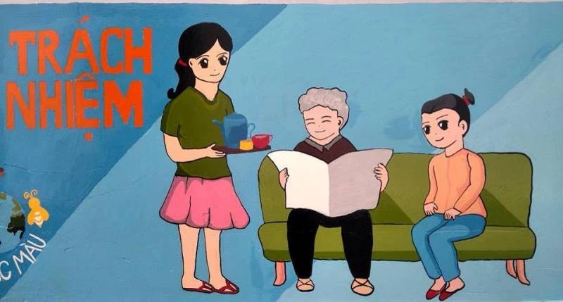 Bức tường được hoàn thành với nhiều màu sắc sống động của cuộc sống, nhắc nhở mỗi người về ý thức, trách nhiệm của mình đối với gia đình và xã hội.