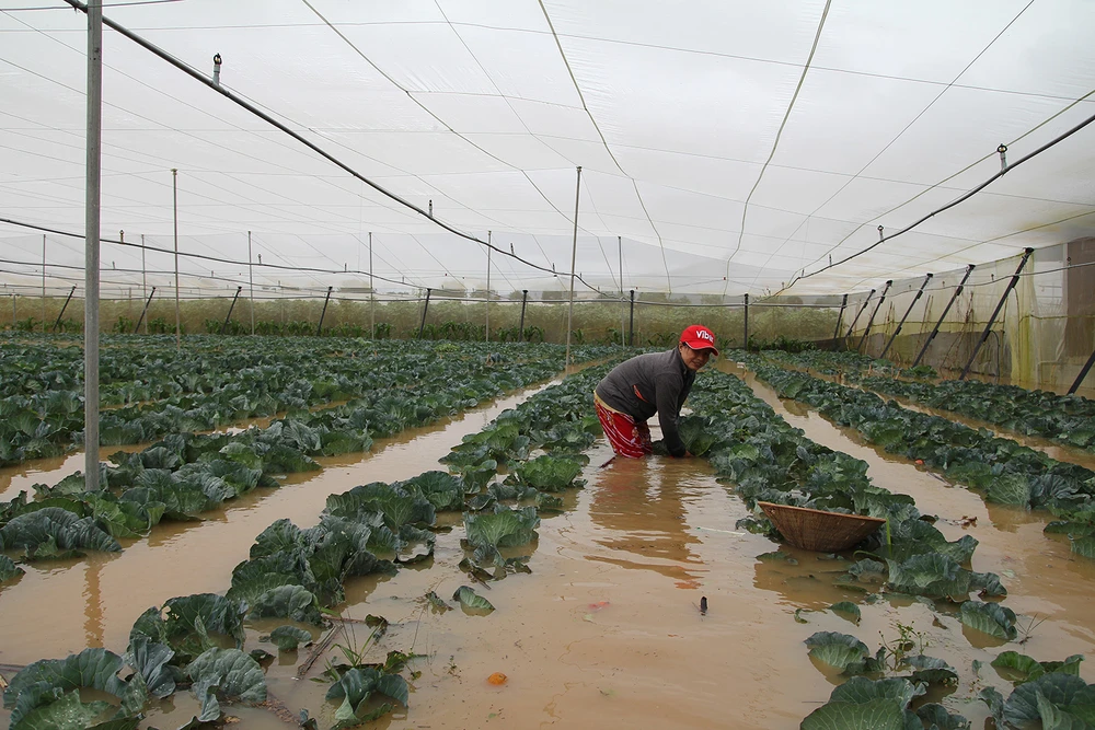 Bà Phạm Thị Thung (ngụ thôn Dom Be, xã Lạc Xuân, huyện Đơn Dương), canh tác hơn 2 ha các loại hoa màu như bắp cải thảo, bắp sú, xà lách, cà chua, ớt Mỹ… nói: “Gia đình đầu tư phân lạc, công sức nhìn rau phát triển xanh tốt, không sâu bệnh chưa kịp vui thì đã bị thiệt hại nặng. Trong đó, nước dồn về rất nhanh chưa kịp dọn dẹp đồ đạc thì nước ập vào trong nhà. Ước tính thiệt hại nặng nhất là vườn bắp sú, xà lách và ớt Mỹ… được canh tác trong nhà kính lên đến gần 1 tỉ đồng”.