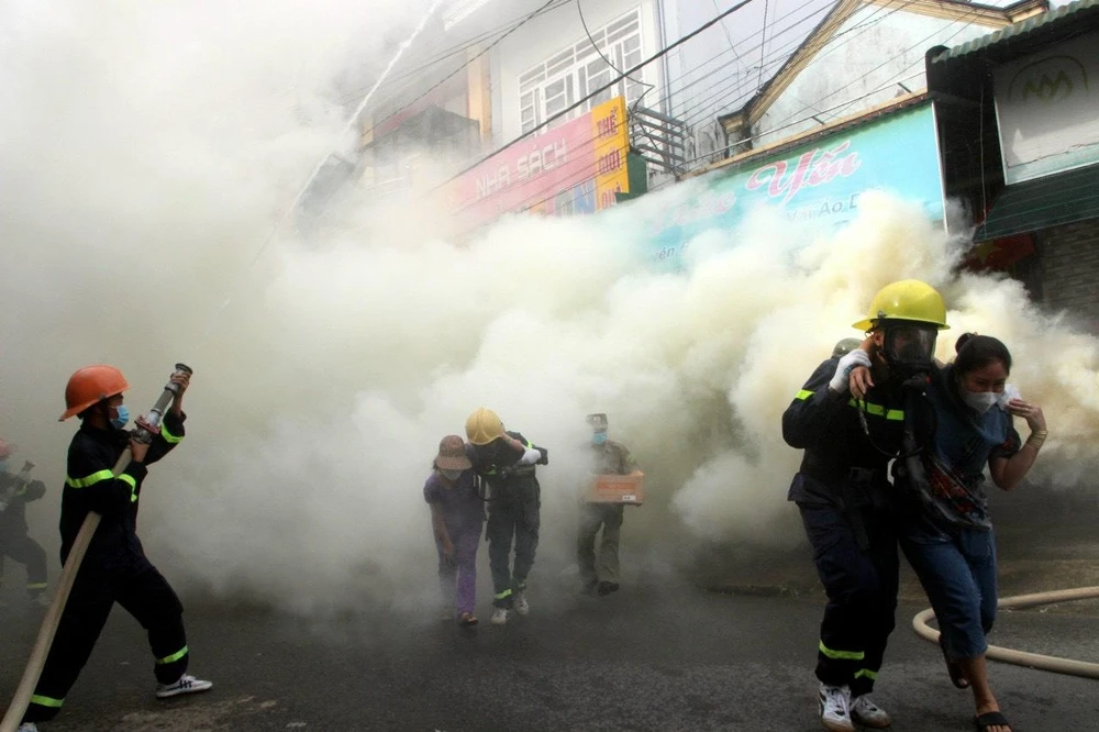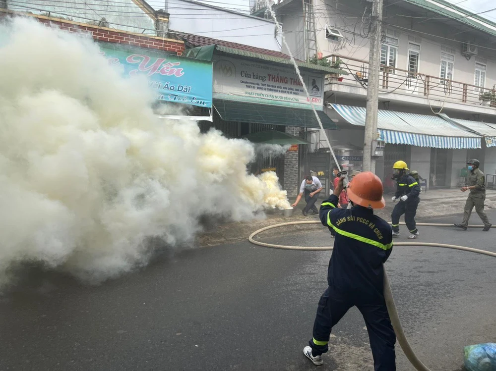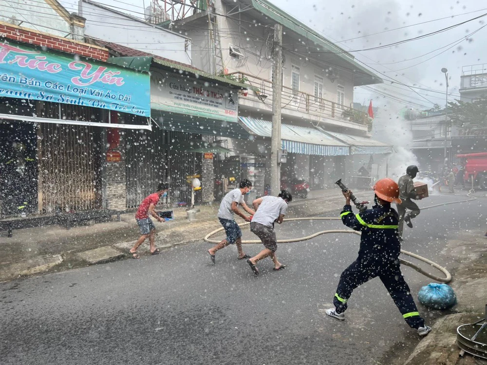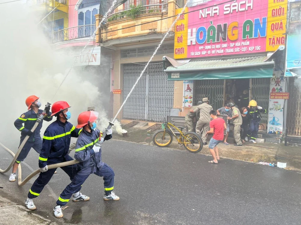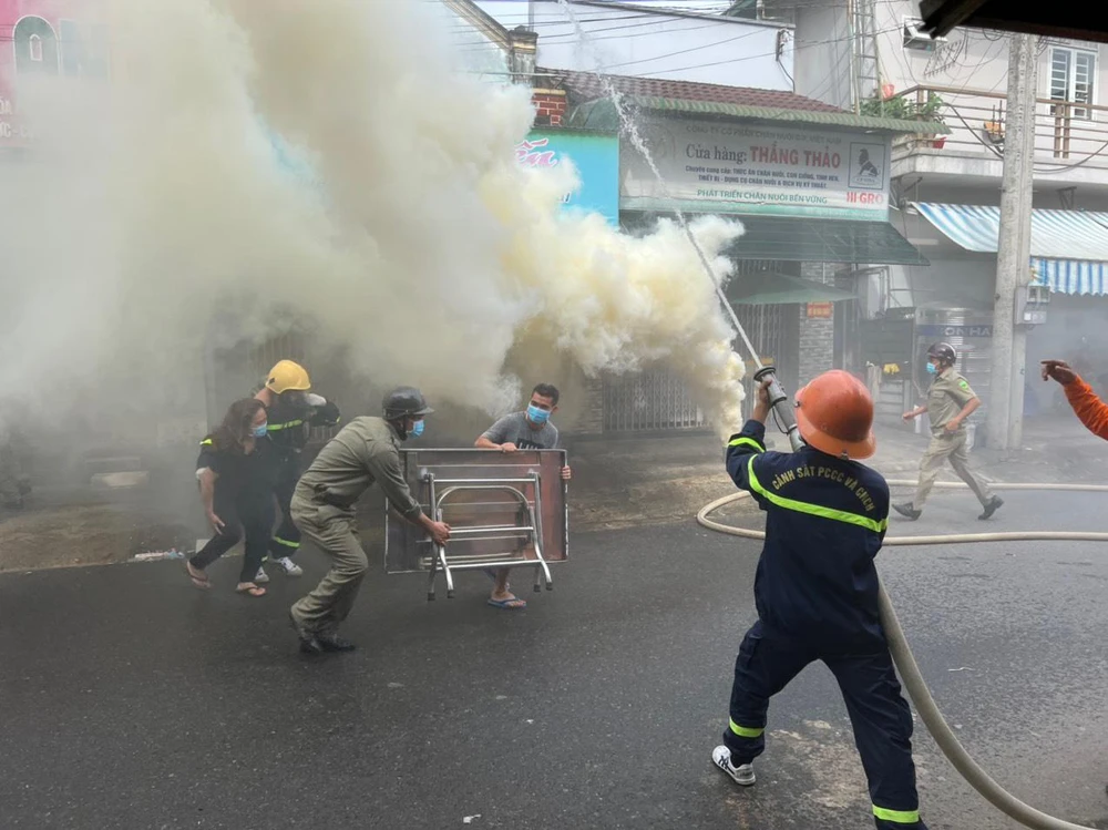 Chiều 21-9, Công an huyện Đạ Huoai phối hợp với Phòng Cảnh sát PCCC&CNCH (Công an tỉnh Lâm Đồng) tổ chức thực tập phương án chữa cháy khu dân cư tại thị trấn Mađaguôi.