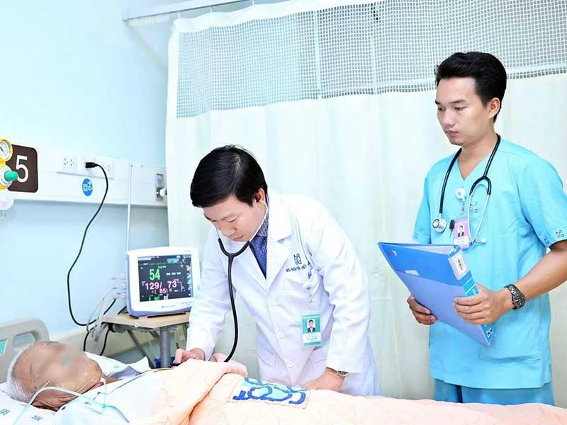 BS Nguyễn Viết Hậu đang khám cho một bệnh nhân bị biến chứng do lạm dụng thuốc giảm đau. Ảnh: HL