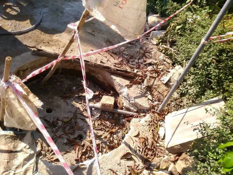 Theo hình ảnh cho thấy giếng bị phủ bê tông lên trên và có nhiều cọc tre và dây giăng xung quanh.