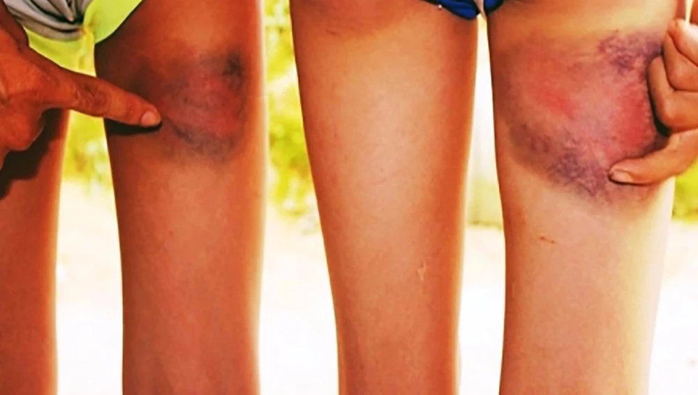 Chị Nguyễn Thị Hằng (trú thôn Bến Ván, xã Lộc Bổn, huyện Phú Lộc) là phụ huynh của em Ngô Đình M. (học sinh lớp 7/1 Trường Tiểu học và THCS Bến Ván) cho biết: Tối thứ Bảy (22-10), khi cả nhà đang ăn cơm thì thấy em M. có biểu hiện ngồi lệch, nghiêng mông. Thấy không bình thường nên gia đình tra hỏi thì phát hiện chỗ đùi sát mông của em bị bầm tím.