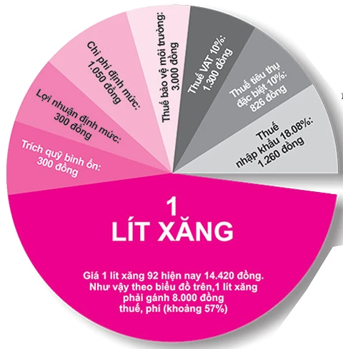 Đánh thuế quá cao sẽ triệt tiêu động lực phát triển. Trong ảnh: Thuế, phí hiện chiếm rất cao trong cơ cấu xăng dầu. Đồ họa: T.HOAN