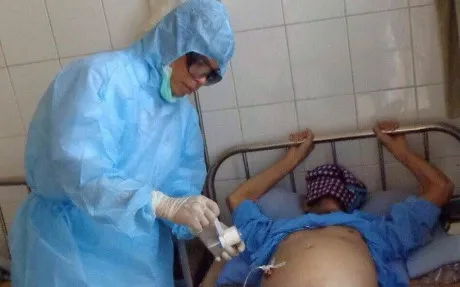 Bác sĩ Hoàng Hải Hà điều trị cho một bệnh nhân AIDS tại Bệnh viện 09. Ảnh: HQ.
