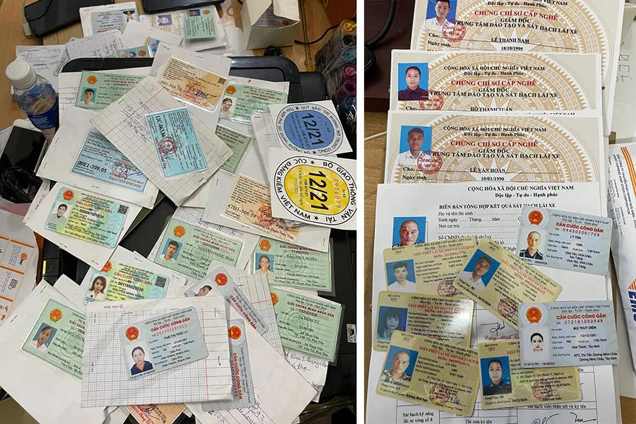 Công an cũng kiểm tra máy tính và USB có 664 file các loại giấy tờ bằng cấp, chứng chỉ, giấy phép lái xe, căn cước công dân, bảng điểm, khai sinh…
