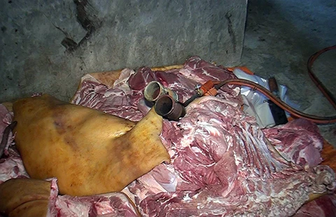 Thịt heo hôi thối bị bắt quả tang tại nhà ông Nguyễn Văn Tuấn. Ảnh: PN