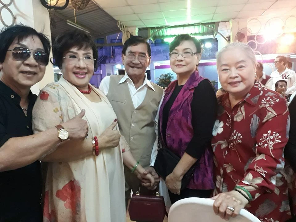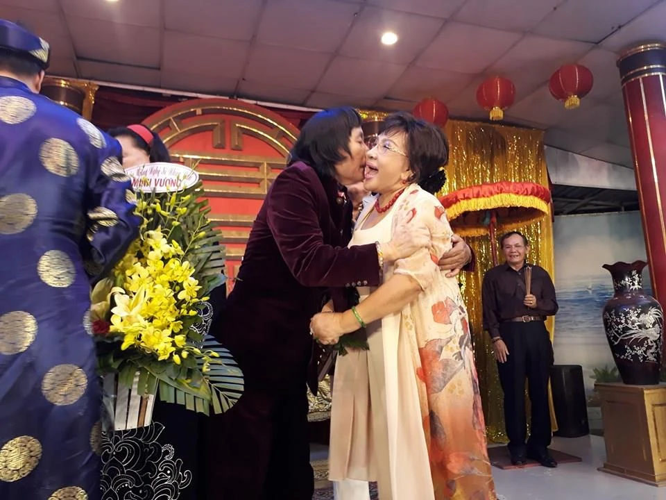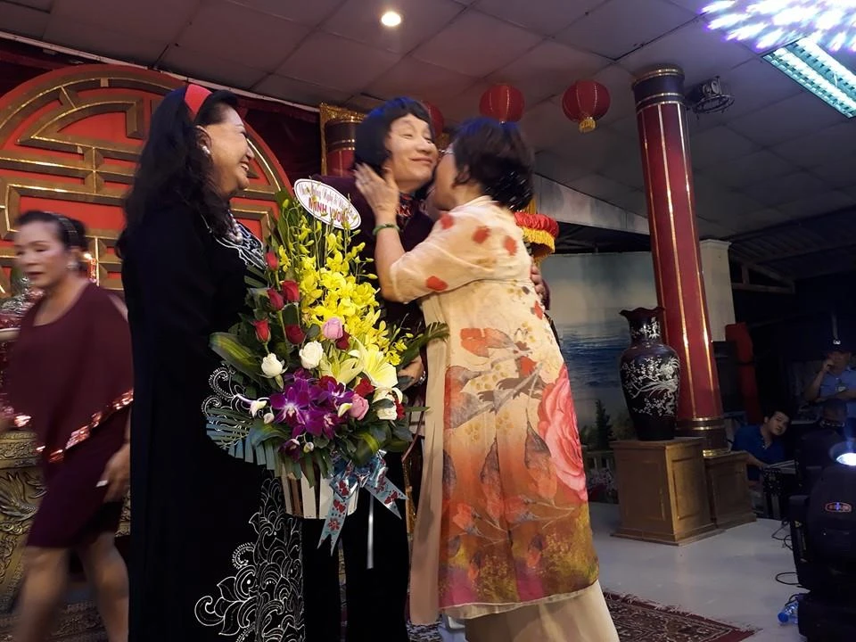 Nghệ sĩ Lệ Thủy chào hỏi vợ chồng nghệ sĩ Nam Hùng, Tô Kim Hồng và Thanh Nguyệt.