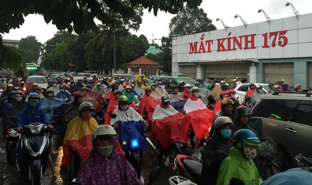 Ùn tắc thường xuyên trên đường Nguyễn Kiệm, trước bệnh viện 175, đổ vào nút Nguyễn Kiệm - Nguyễn Thái Sơn. Ảnh: L.ĐỨC-H.TUYÊN