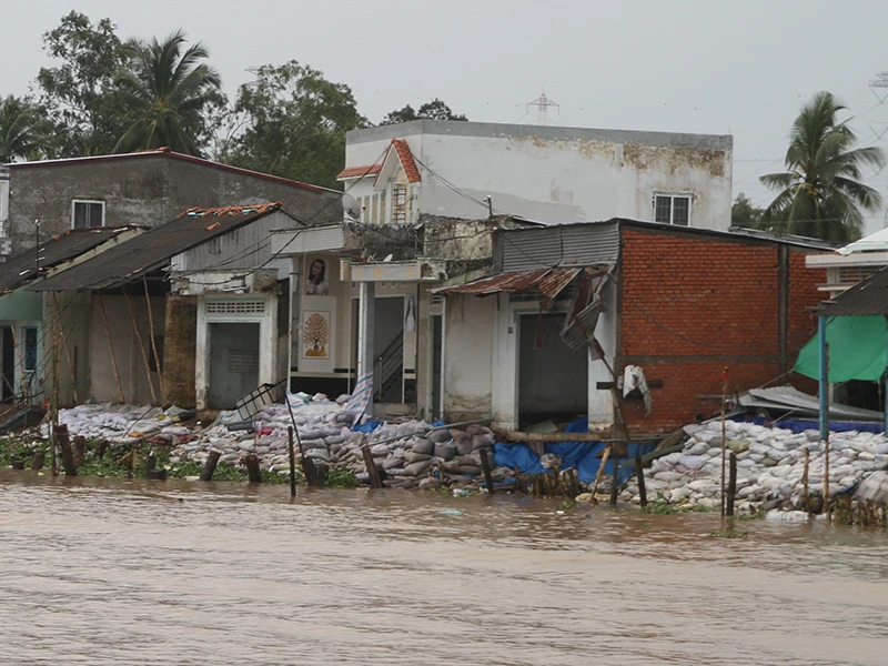 “Khoảng một tháng trước, thấy mấy ổng đến đo đạc, cắm mốc cũng thấy mừng nhưng sao tới nay chưa thấy gì. Dân ở đây ăn ngủ không yên, không biết nó sẽ lở lúc nào nữa. Bà con hùn tiền làm bao cát, người hùn cũng cả chục triệu đồng” - bà Nguyễn Thị Kim Tác, một người dân có nhà tại đây, cho biết.