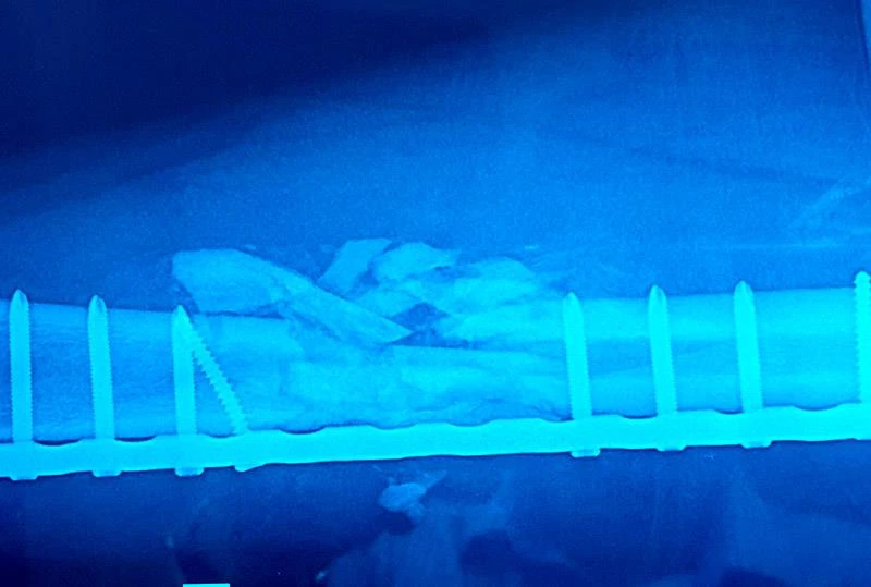 Phần xương đùi của Cường bị vỡ sau khi được chụp chiếu lại. Ảnh: ĐẶNG TRUNG