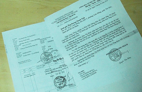 Sổ tiết kiệm 400.000 euro của ông Nghị và công văn trả lời của Ngân hàng Agribank Chi nhánh Mạc Thị Bưởi. Ảnh: HTD