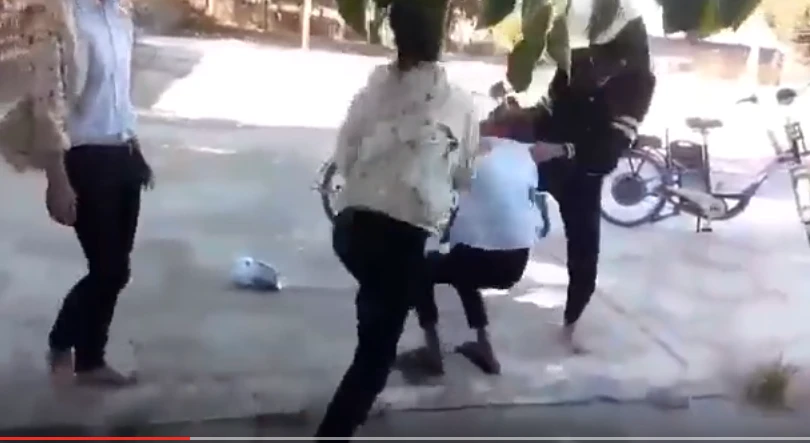 Sáng cùng ngày, nhiều trang mạng xã hội chia sẻ một đoạn clip dài 1 phút 37 giây, đăng trên Youtube từ ngày 10-5, quay cảnh một nhóm ba thiếu nữ xông vào đánh đập một nữ sinh nhỏ tuổi hơn, còn mang khăn quàng đỏ. Ba thiếu nữ này đều mang khẩu trang, mặt áo khoác ngoài, che khuất gần hết áo trắng đồng phục bên trong.
