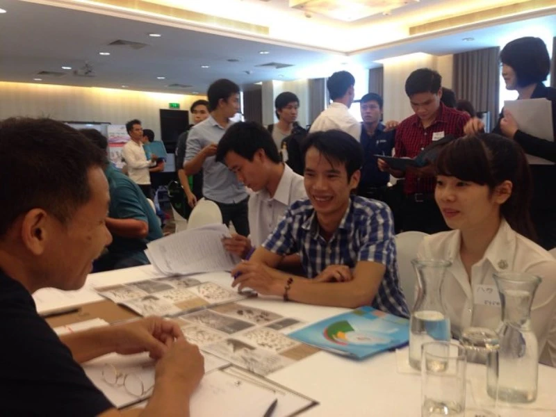 Thực tập sinh Việt Nam hết hạn hợp đồng về nước đang phỏng vấn xin việc tại các công ty Nhật hoạt động tại Việt Nam. Ảnh: AN NHIÊN
