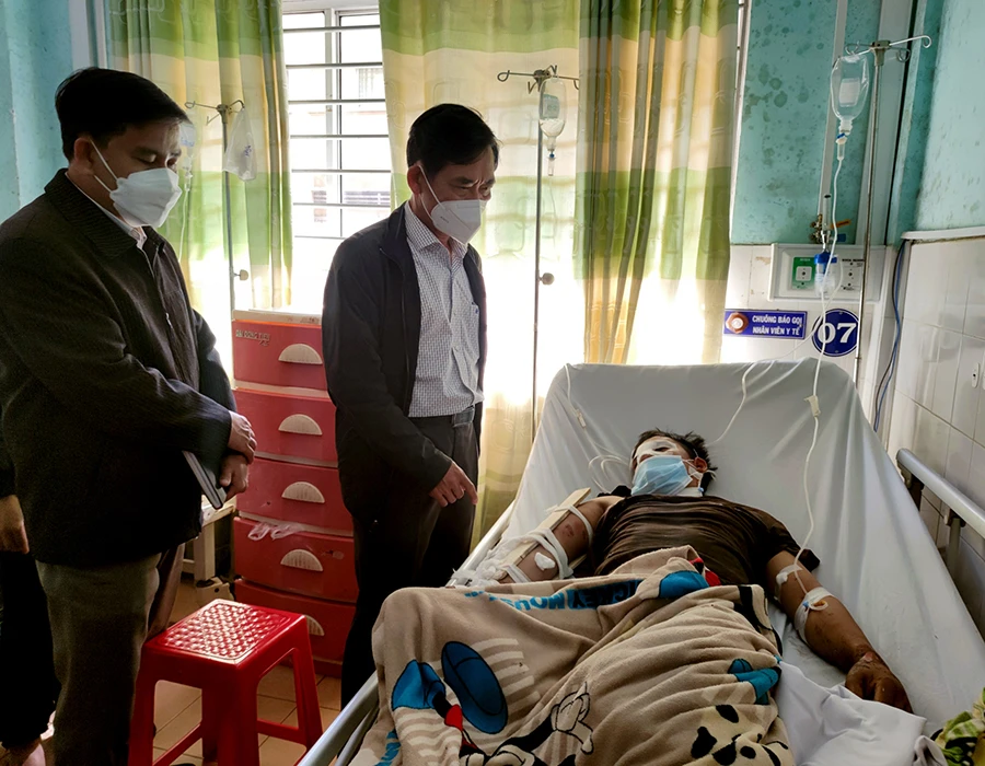 Đại diện Ban An toàn giao thông tỉnh Gia Lai thăm, động viên anh Guêm.