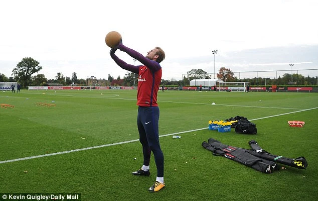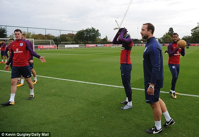 Các cầu thủ Anh tập luyện với quả bóng thuốc.