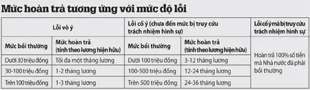 . Có ý kiến cho rằng số tiền người THCV hoàn trả cho ngân sách quá thấp so với số tiền mà Nhà nước đã chi trả bồi thường cho người bị thiệt hại. Vậy mức hoàn trả cụ thể trong thông tư này ra sao và có tương xứng với kinh phí bồi thường để bảo đảm tính răn đe chưa?