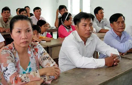 Anh Trương Hoàng Hiếu (giữa) bị kết án oan sau hơn hai năm ngồi tù và được TAND huyện Mỹ Tú, tỉnh Sóc Trăng xin lỗi và bồi thường gần 170 triệu đồng. Ảnh: LIN CA