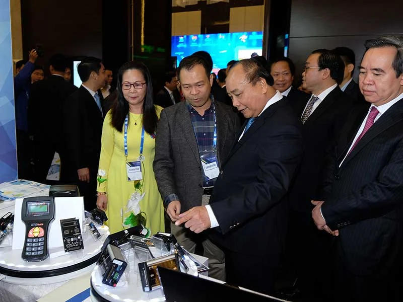 Điểm qua những chương trình ứng dụng và phát triển công nghệ thông minh ở nhiều nước, Thủ tướng Nguyễn Xuân Phúc đề cập tới việc các tập đoàn như Alibaba, Facebook, Amazon… đã trở thành những người khổng lồ trong thương mại điện tử, mạng xã hội và có tác động lan tỏa, kết nối mạnh mẽ trong nền kinh tế toàn cầu.