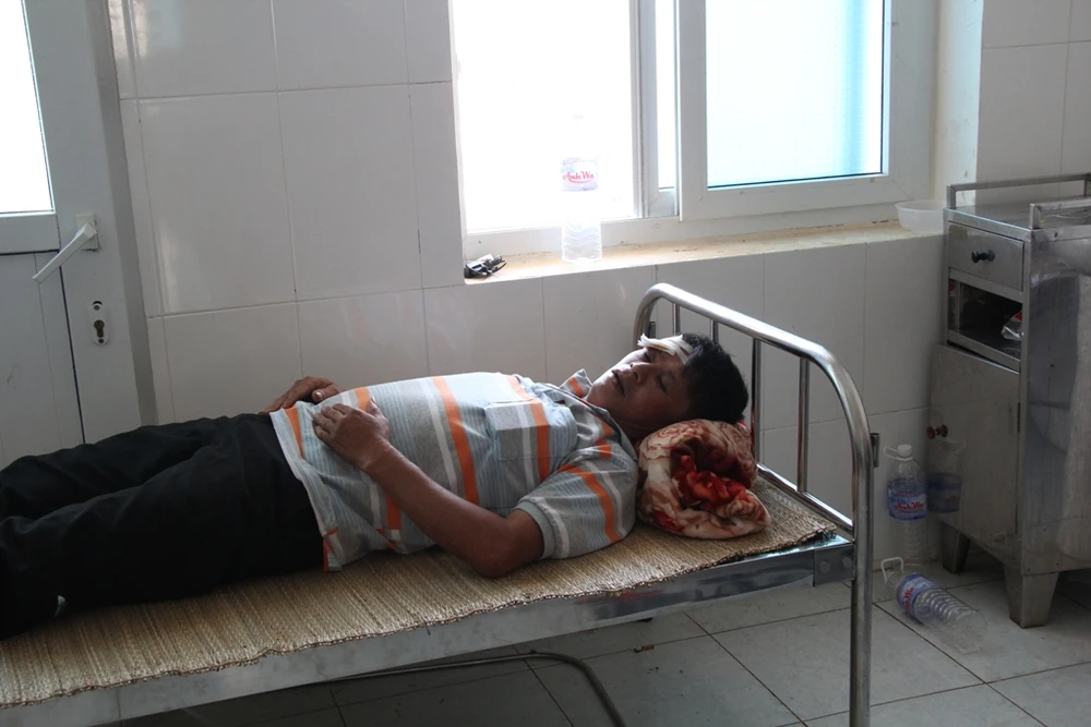 Anh Ngọc đang nằm cấp cứu tại BV Đa khoa huyện Krông Nô với vết thương trên trán.