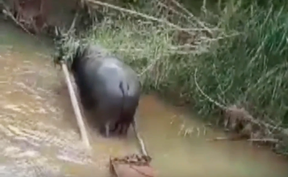 Lâm tặc dùng trâu kéo gỗ ra khỏi rừng.