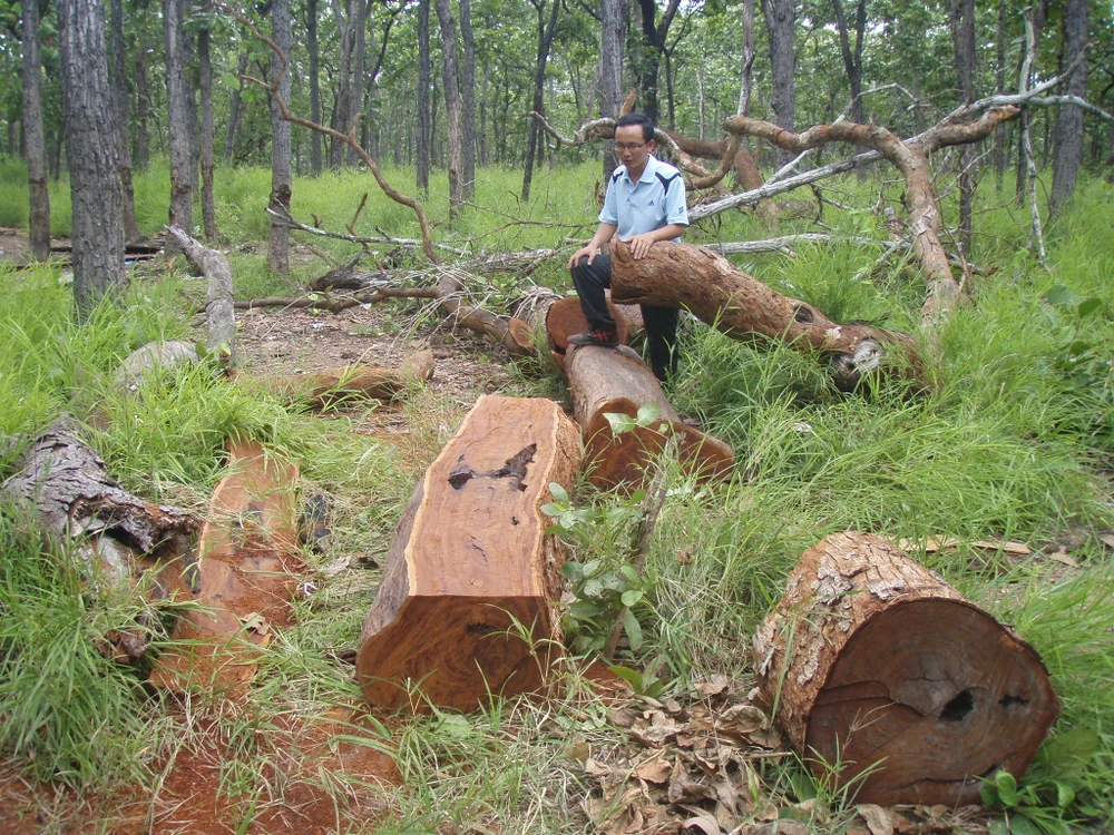 Hiện trường một vụ khai thác gỗ trái phép xảy ra tại Vườn Quốc gia Yok Đôn.