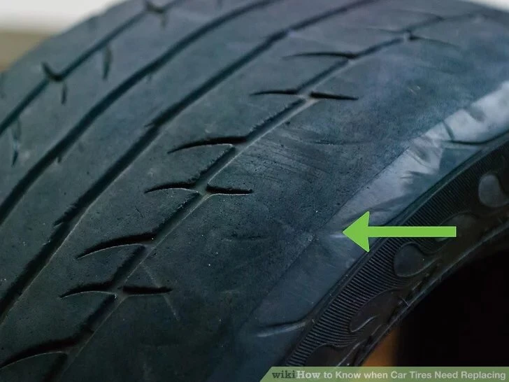 Nếu lốp xuất hiện tình trạng bất thường ở thành bên cần thay thế ngay lập tức. Ảnh: wikiHow