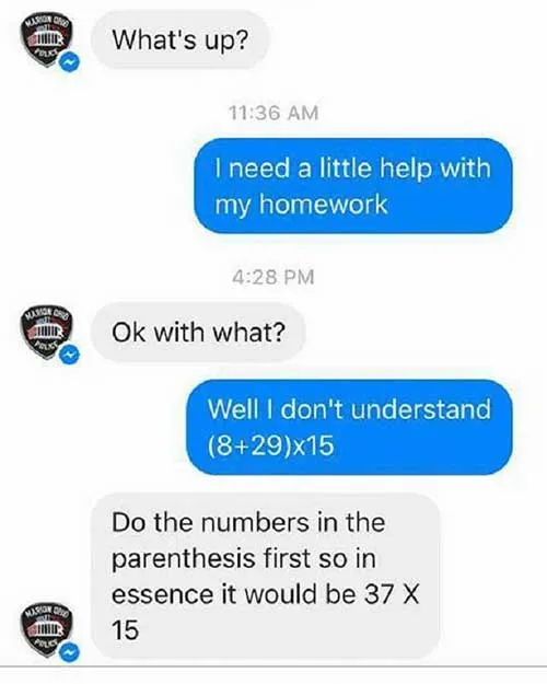 Nội dung trao đổi trên Facebook giữa bé gái Lena Draper và cảnh sát TP Marion, bang Ohio.