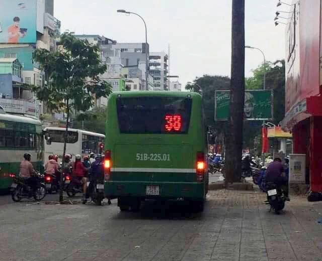 Chiếc xe trên thuộc Công ty CP Xe khách Sài Gòn, chạy tuyến 38 (Khu dân cư Tân Quy, quận 7 - Đầm Sen), có lộ trình đi qua tuyến đường CMT8, Nguyễn Thị Minh Khai.