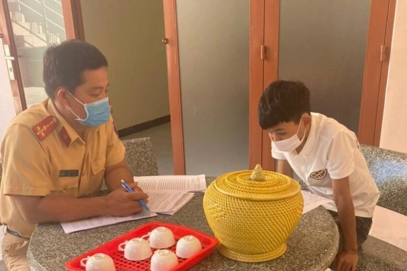 Theo đó, qua xác minh phòng Cảnh sát giao thông đã mời Phạm Tiến Đạt (21 tuổi, HKTT tại TP Thuận An) và Lưu Đức Anh (16 tuổi, HKTT tại TP Dĩ An) lên làm việc, vì trước đó hai thanh niên này có hành vi ngồi một bên điều khiển xe máy tham gia giao thông gây mất an toàn giao thông.