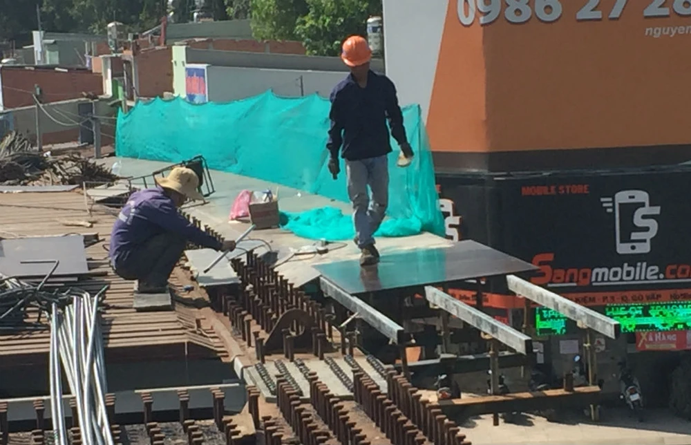 Ngay trong sáng 30-11, công nhân khẩn trương làm cánh gà, cốt thép và ván sàn thép để làm mặt cầu. Công việc này làm hoàn toàn trên cao, không bị ảnh hưởng bởi mặt bằng phía dưới nên sẽ được tập trung nhân lực thi công để đẩy nhanh hơn tiến độ.