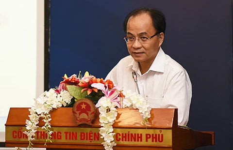 Phó Chủ nhiệm Văn phòng Chính phủ Lê Mạnh Hà chia sẻ trong buổi họp báo chiều 20-10 giới thiệu Nghị quyết 36a về chính phủ điện tử mới được ban hành.